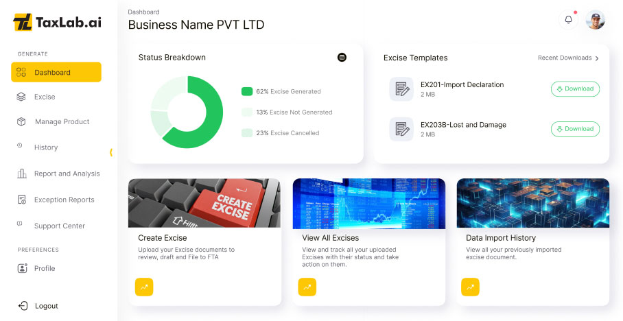 Managing excise duty filings can be complex and time-consuming. Taxlab offers Excise Filing Automation solutions that streamline this process, ensuring compliance and reducing administrative overhead.